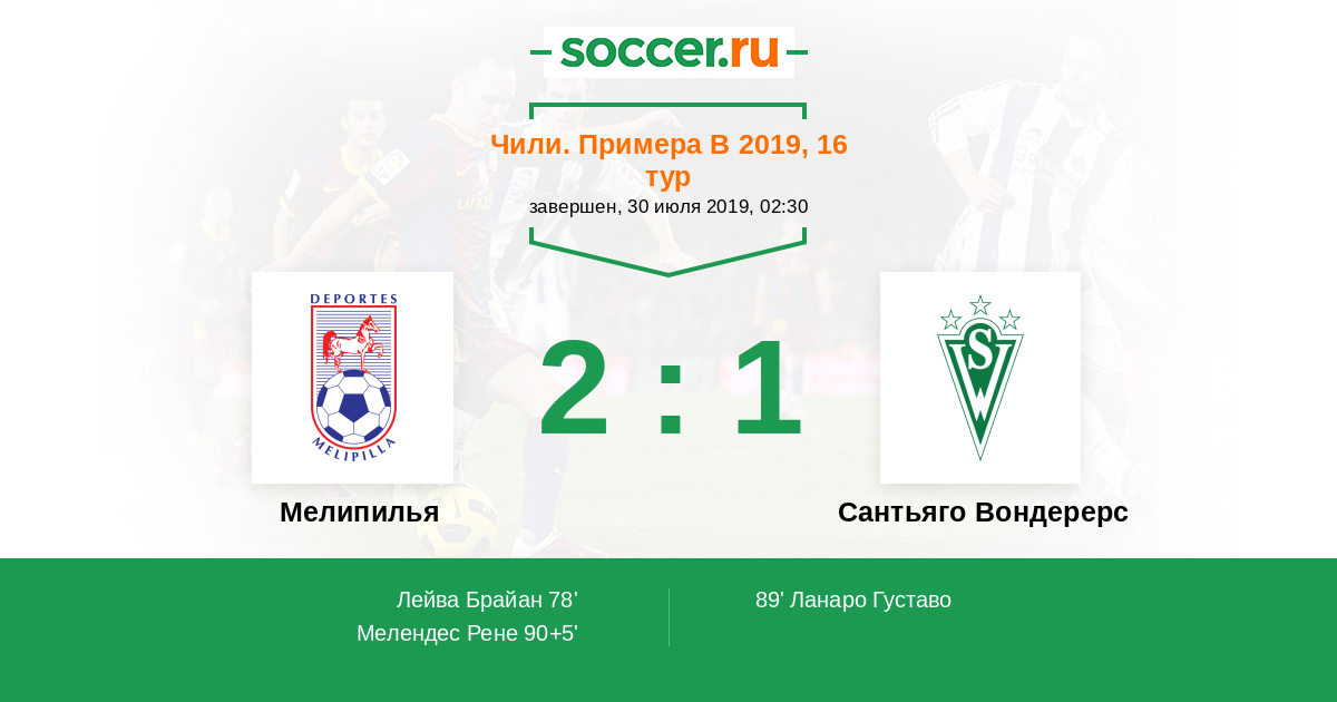 Протокол матча Мелипилья против Сантьяго Вондерерс