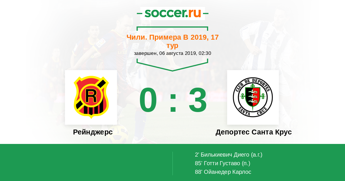 Протокол матча Рейнджерс против Депортес Санта Крус