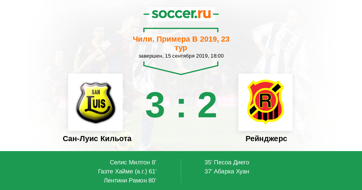 Протокол матча Сан-Луис Кильота против Рейнджерс