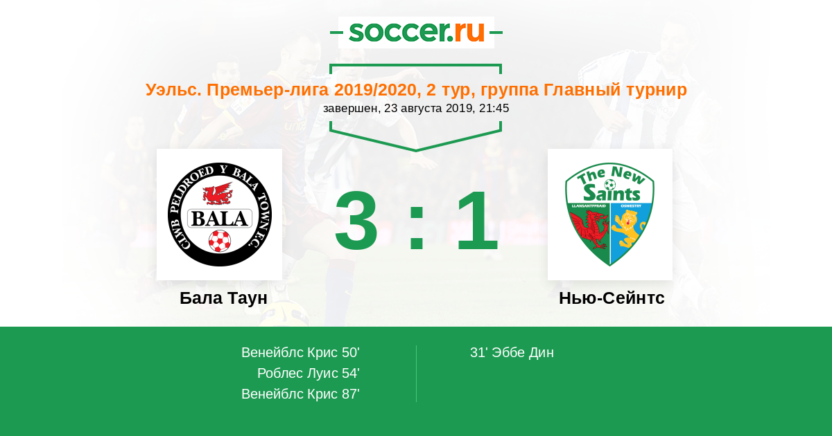 Протокол матча Бала Таун против Нью-Сейнтс