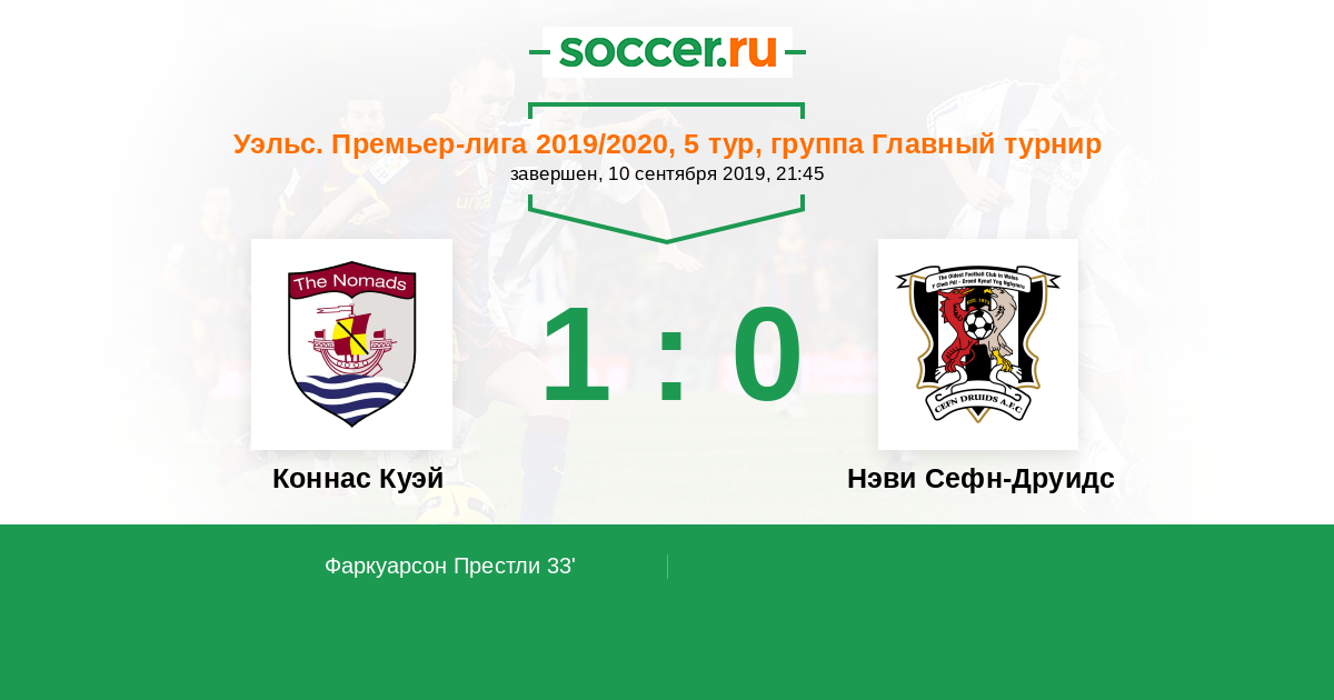 Протокол матча Коннас Куэй против Нэви Сефн-Друидс