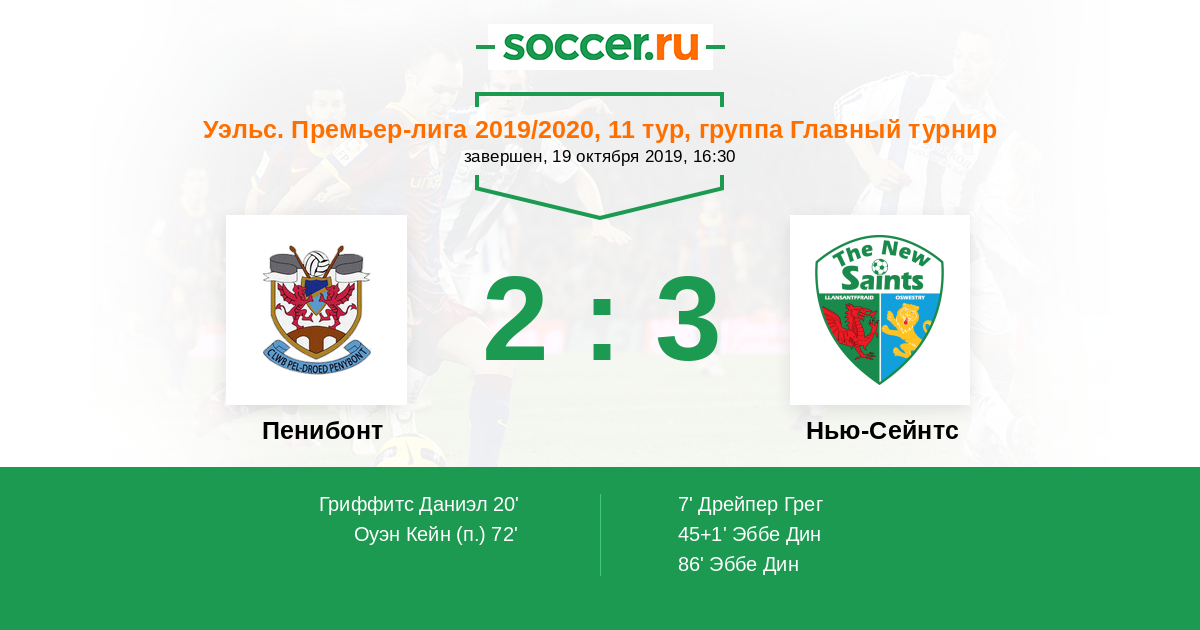 Протокол матча Пенибонт против Нью-Сейнтс