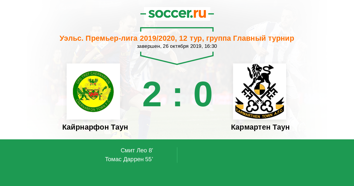 Протокол матча Кайрнарфон Таун против Кармартен Таун
