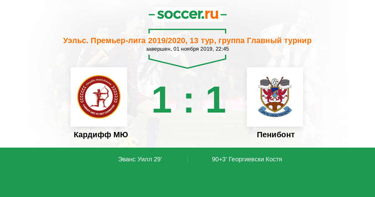 Протокол матча Кардифф МЮ против Пенибонт