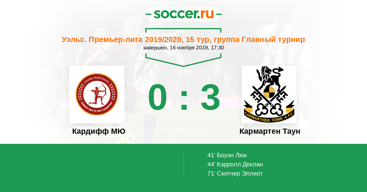 Протокол матча Кардифф МЮ против Кармартен Таун