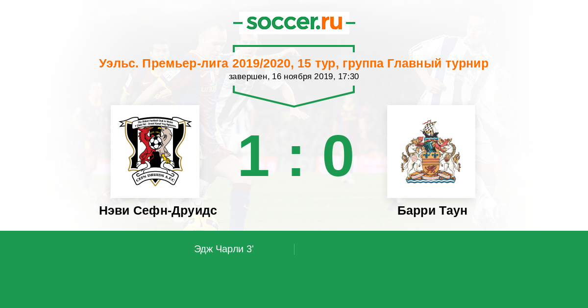 Протокол матча Нэви Сефн-Друидс против Барри Таун