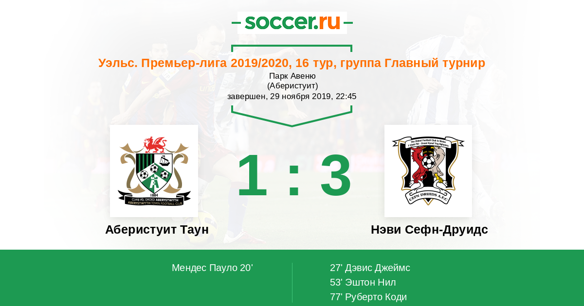 Протокол матча Аберистуит Таун против Нэви Сефн-Друидс