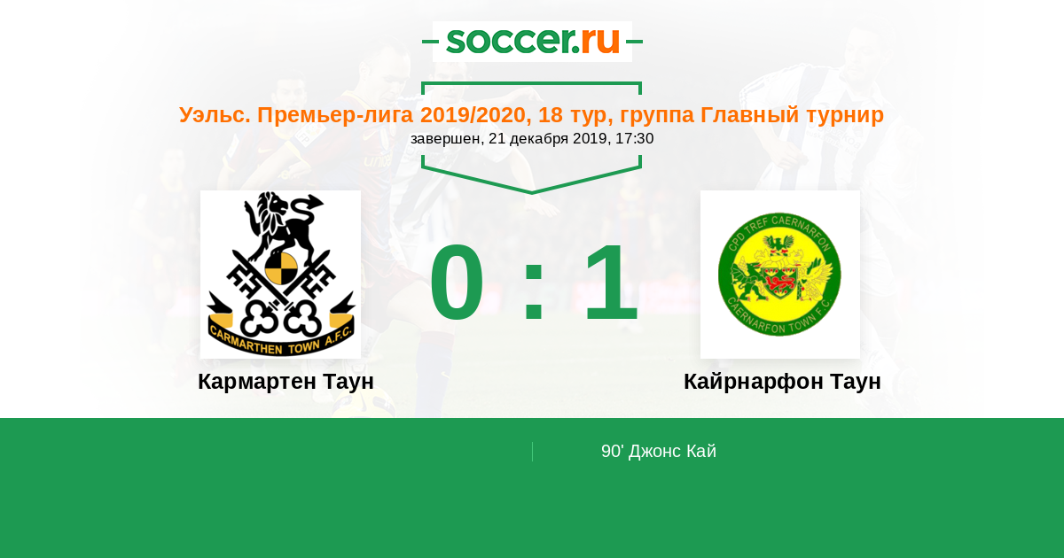 Протокол матча Кармартен Таун против Кайрнарфон Таун