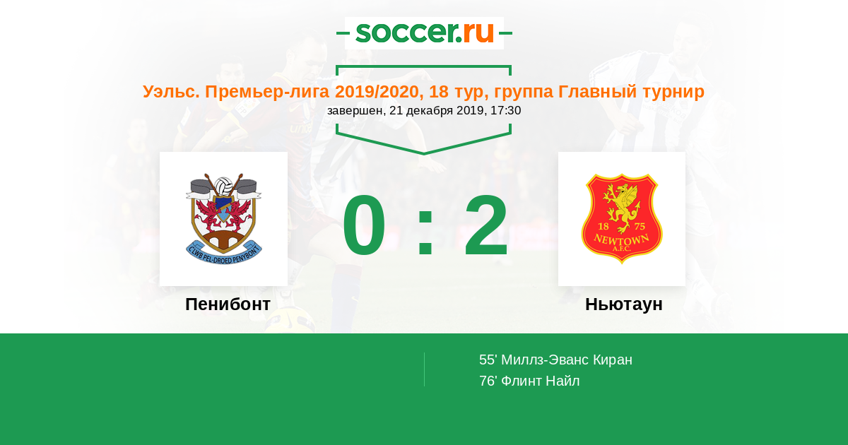 Протокол матча Пенибонт против Ньютаун