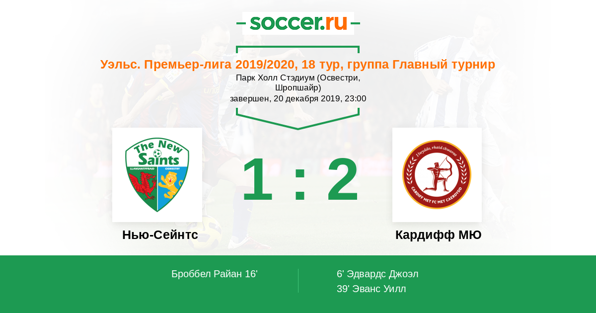 Протокол матча Нью-Сейнтс против Кардифф МЮ