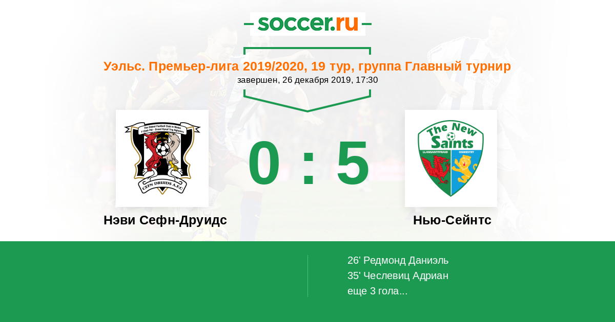 Протокол матча Нэви Сефн-Друидс против Нью-Сейнтс