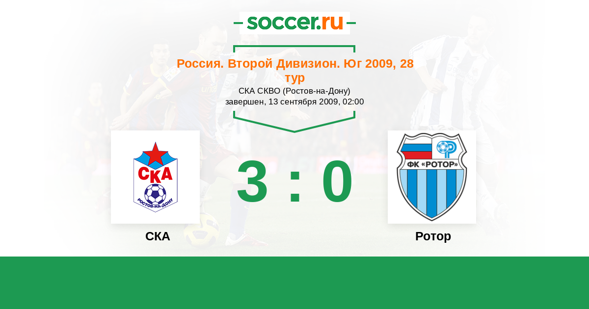 Россия. Вторая лига. Группа 1 18.04.2012 СКА Логотип футбольный клуб СКА (Ростов-на-Дону) 0:3 Логотип футбольный клуб Ротор (Волгоград) Ротор