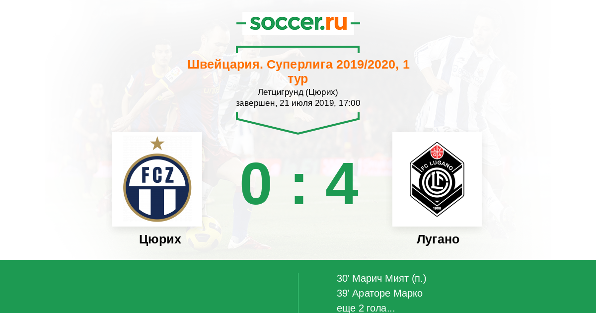 Протокол матча Цюрих против Лугано