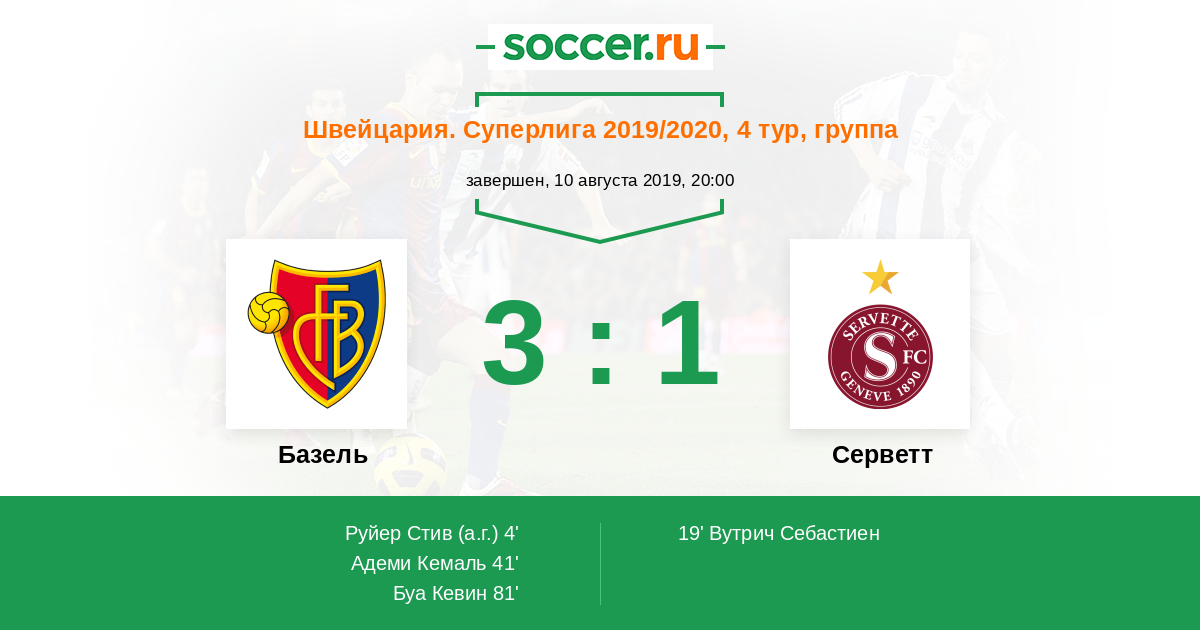 Протокол матча Базель против Серветт