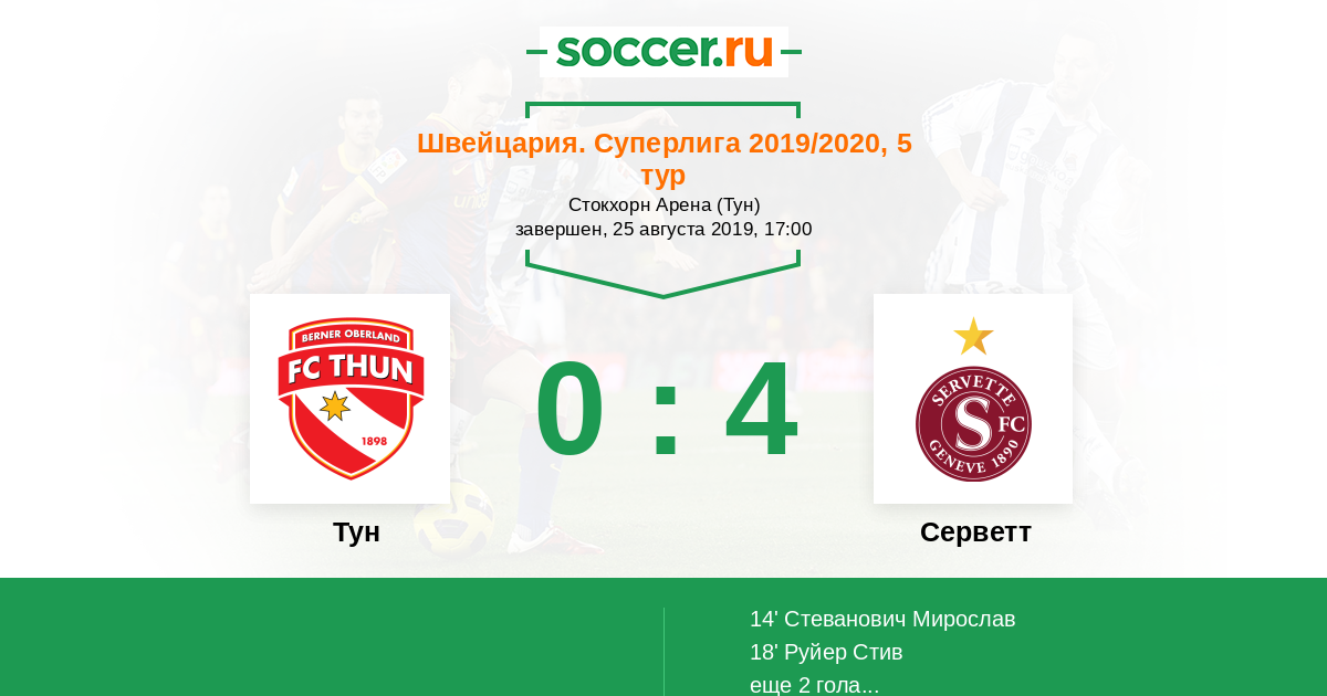 Протокол матча Тун против Серветт