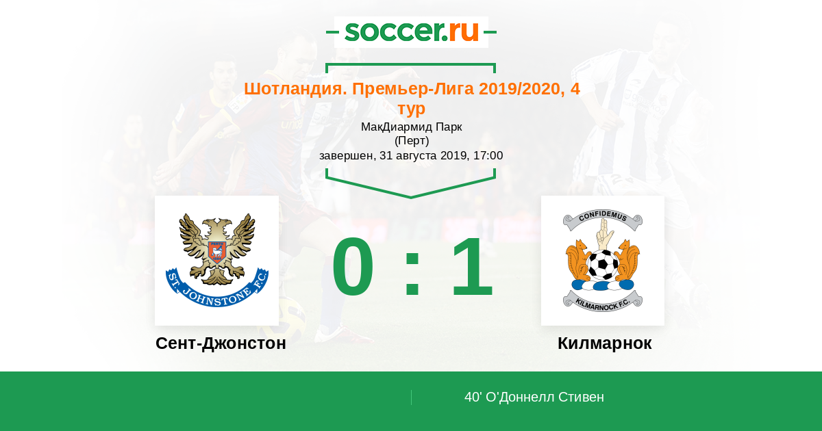 Протокол матча Сент-Джонстон против Килмарнок