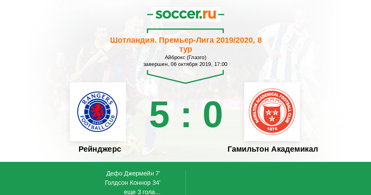 Протокол матча Рейнджерс против Гамильтон Академикал