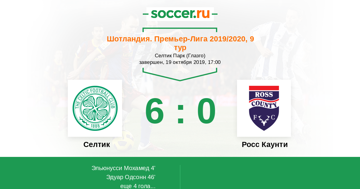 Протокол матча Селтик против Росс Каунти