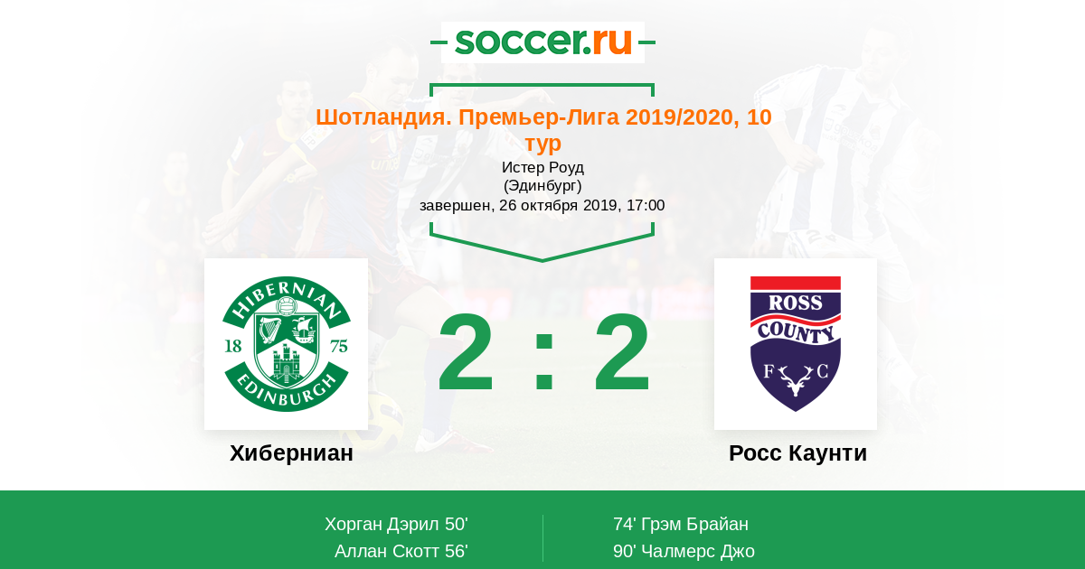 Протокол матча Хиберниан против Росс Каунти