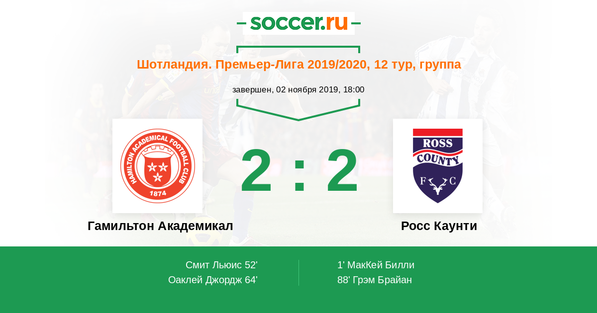 Протокол матча Гамильтон Академикал против Росс Каунти