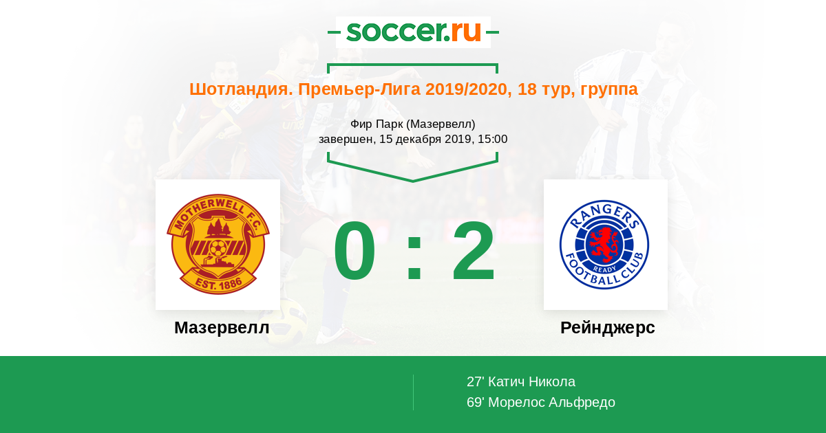 Протокол матча Мазервелл против Рейнджерс