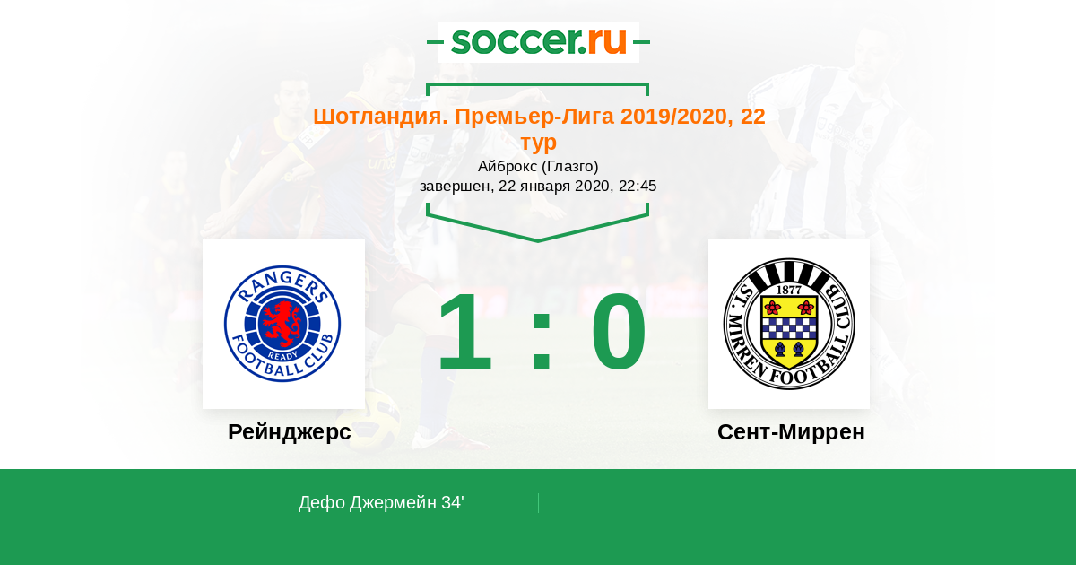 Протокол матча Рейнджерс против Сент-Миррен