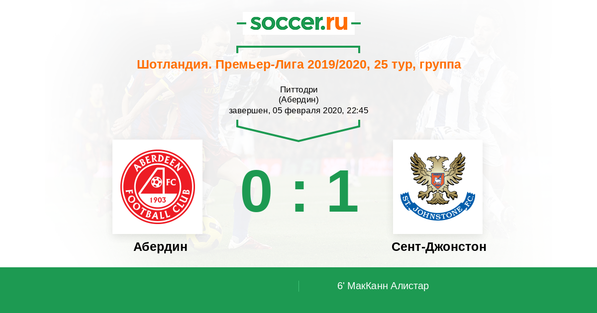 Протокол матча Абердин против Сент-Джонстон