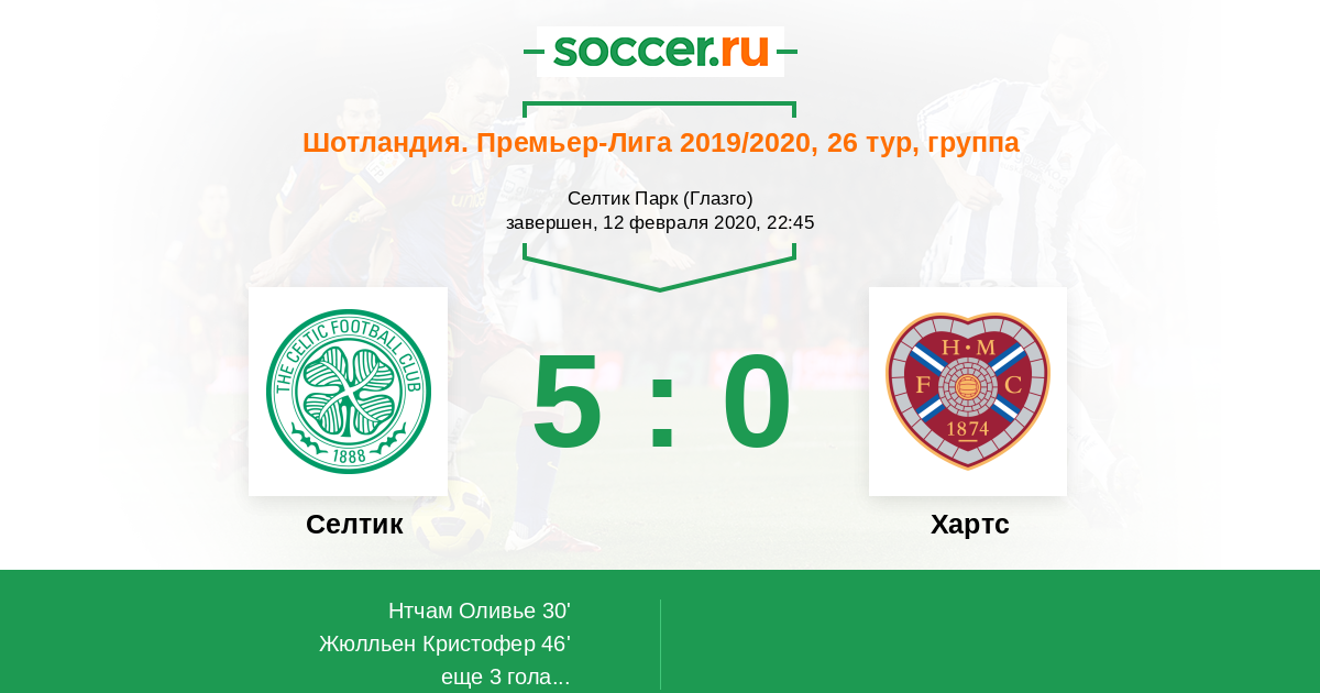Протокол матча Селтик против Хартс