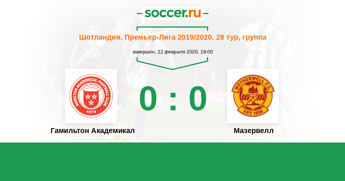Протокол матча Гамильтон Академикал против Мазервелл