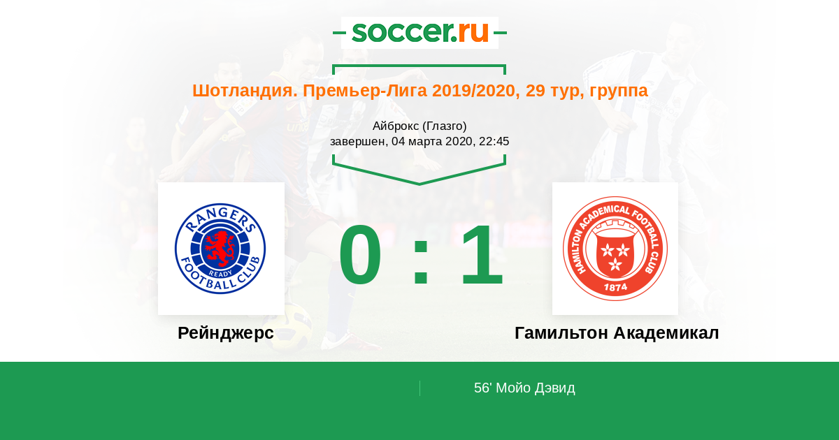 Протокол матча Рейнджерс против Гамильтон Академикал