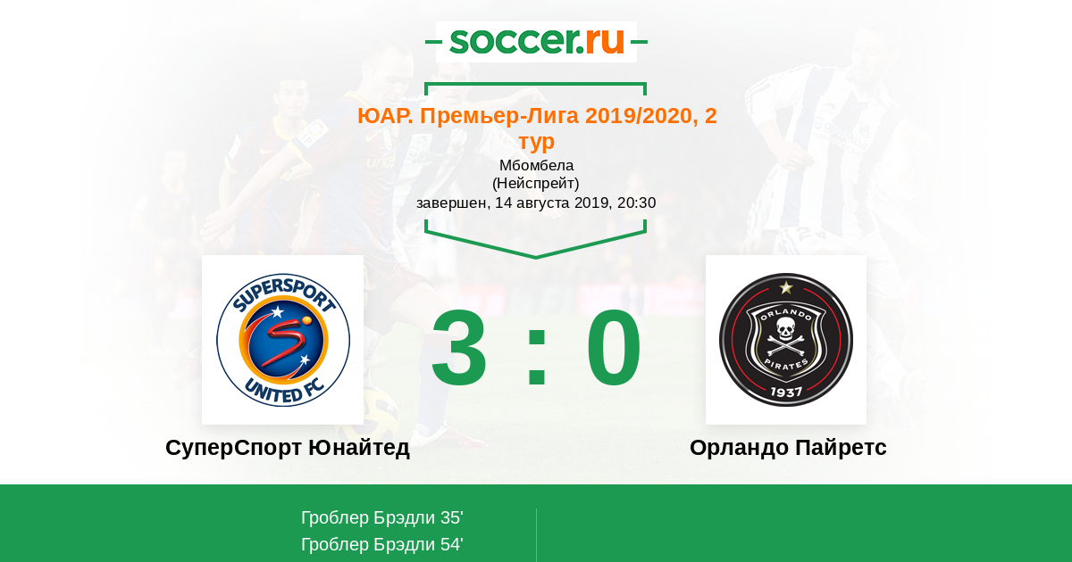 Протокол матча СуперСпорт Юнайтед против Орландо Пайретс