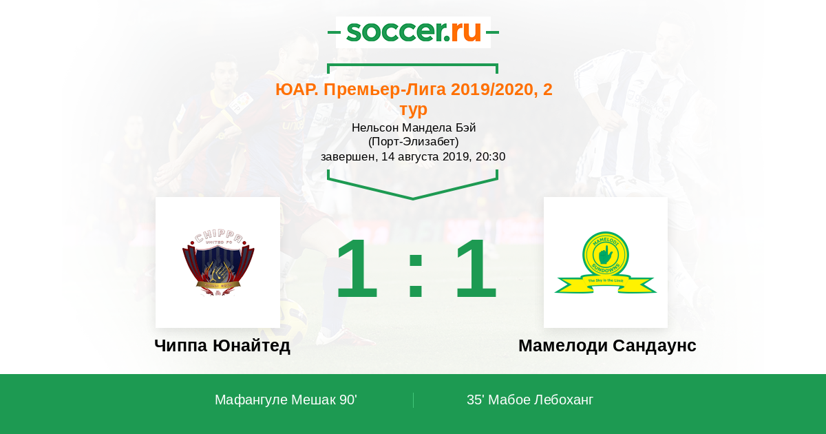 Протокол матча Чиппа Юнайтед против Мамелоди Сандаунс