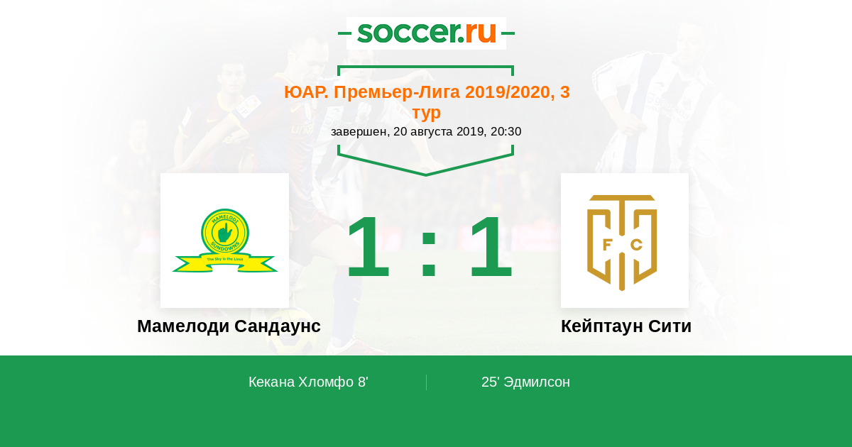 Протокол матча Мамелоди Сандаунс против Кейптаун Сити