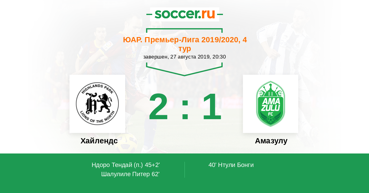 Протокол матча Хайлендс против Амазулу