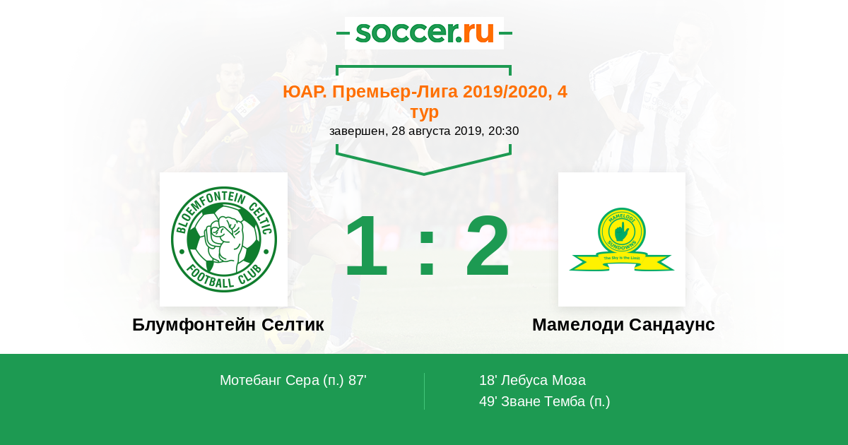 Протокол матча Блумфонтейн Селтик против Мамелоди Сандаунс