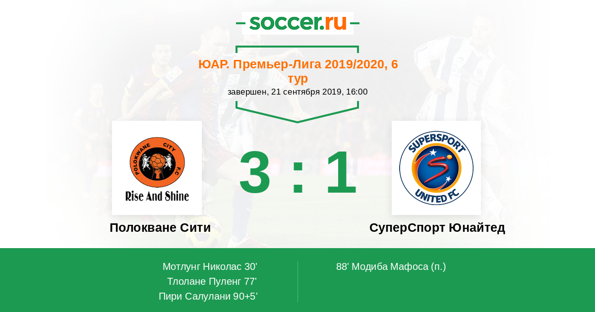 Протокол матча Полокване Сити против СуперСпорт Юнайтед