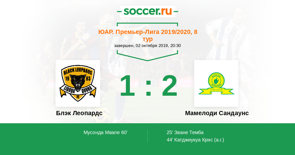 Протокол матча Блэк Леопардс против Мамелоди Сандаунс