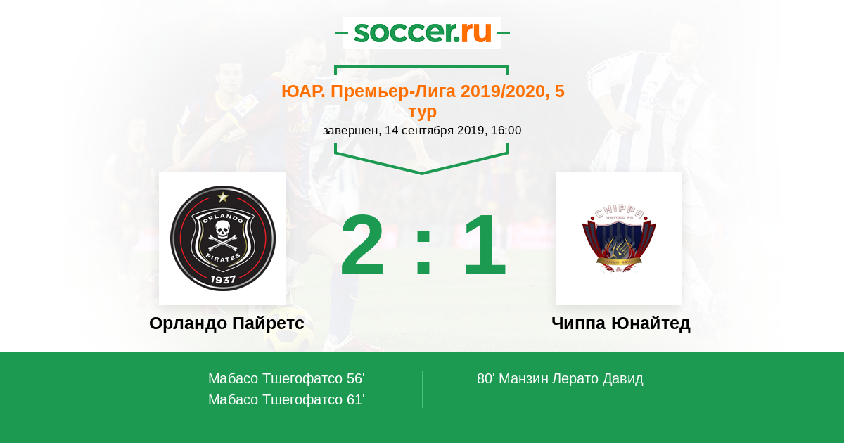 Протокол матча Орландо Пайретс против Чиппа Юнайтед