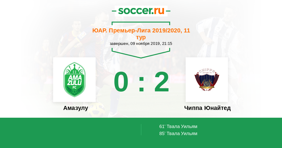 61' (0:1) Твала Уильям (40) (Ракале Табо (8))