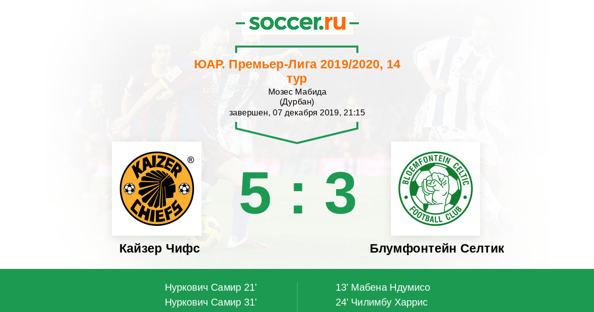 Протокол матча Кайзер Чифс против Блумфонтейн Селтик