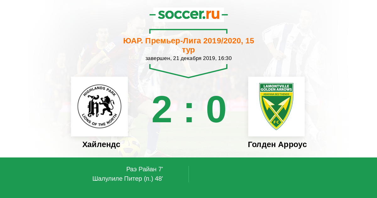 Протокол матча Хайлендс против Голден Арроус