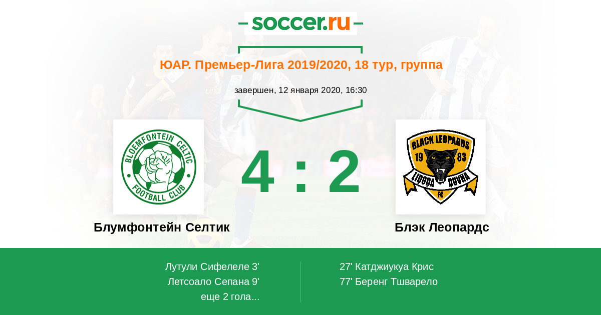Протокол матча Блумфонтейн Селтик против Блэк Леопардс