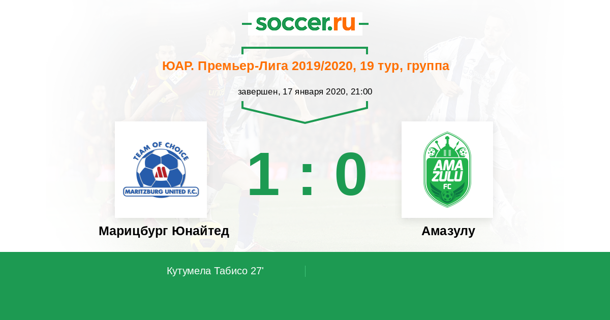 Протокол матча Марицбург Юнайтед против Амазулу