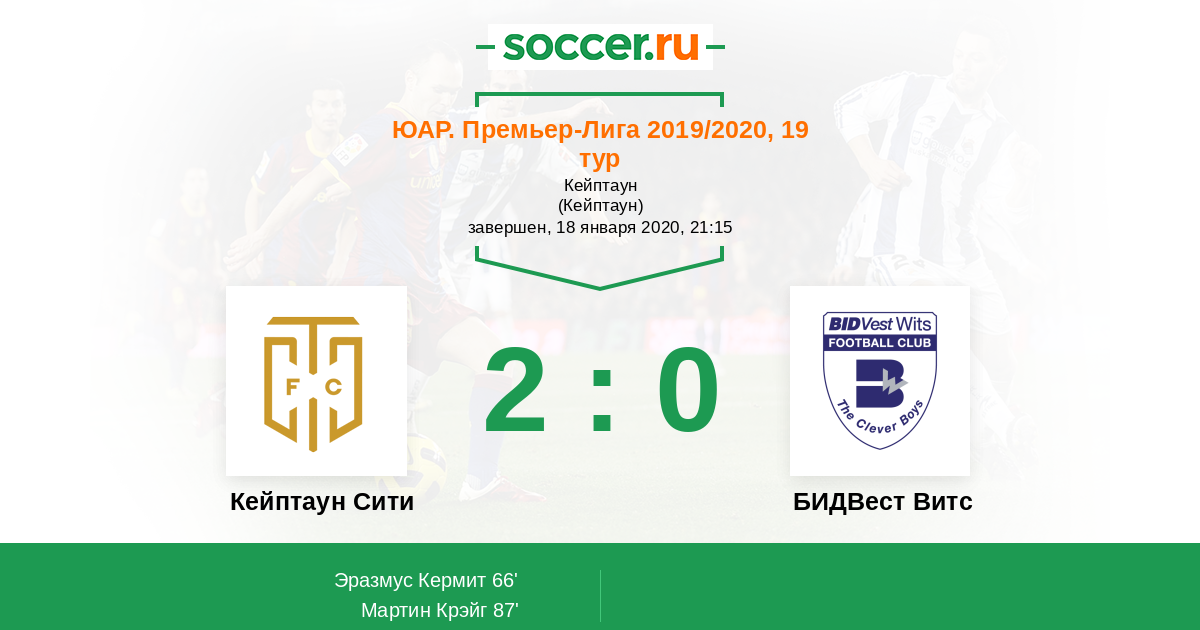 Протокол матча Кейптаун Сити против БИДВест Витс