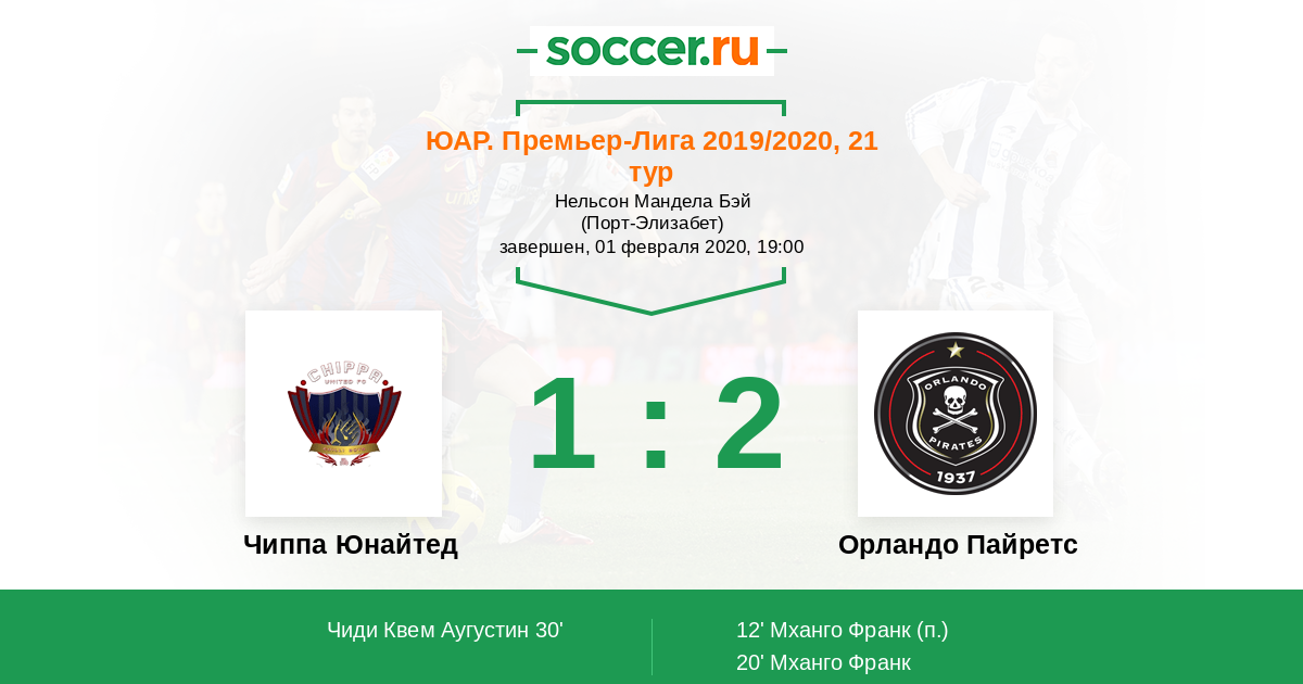 Протокол матча Чиппа Юнайтед против Орландо Пайретс