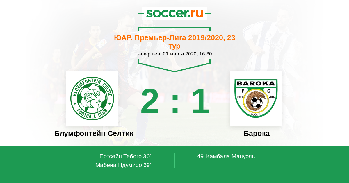 30' (1:0) Потсейн Тебого (11) (Мабена Ндумисо (10))