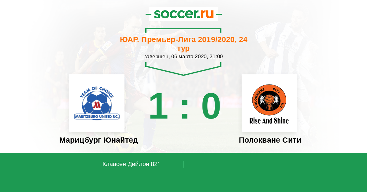 Протокол матча Марицбург Юнайтед против Полокване Сити