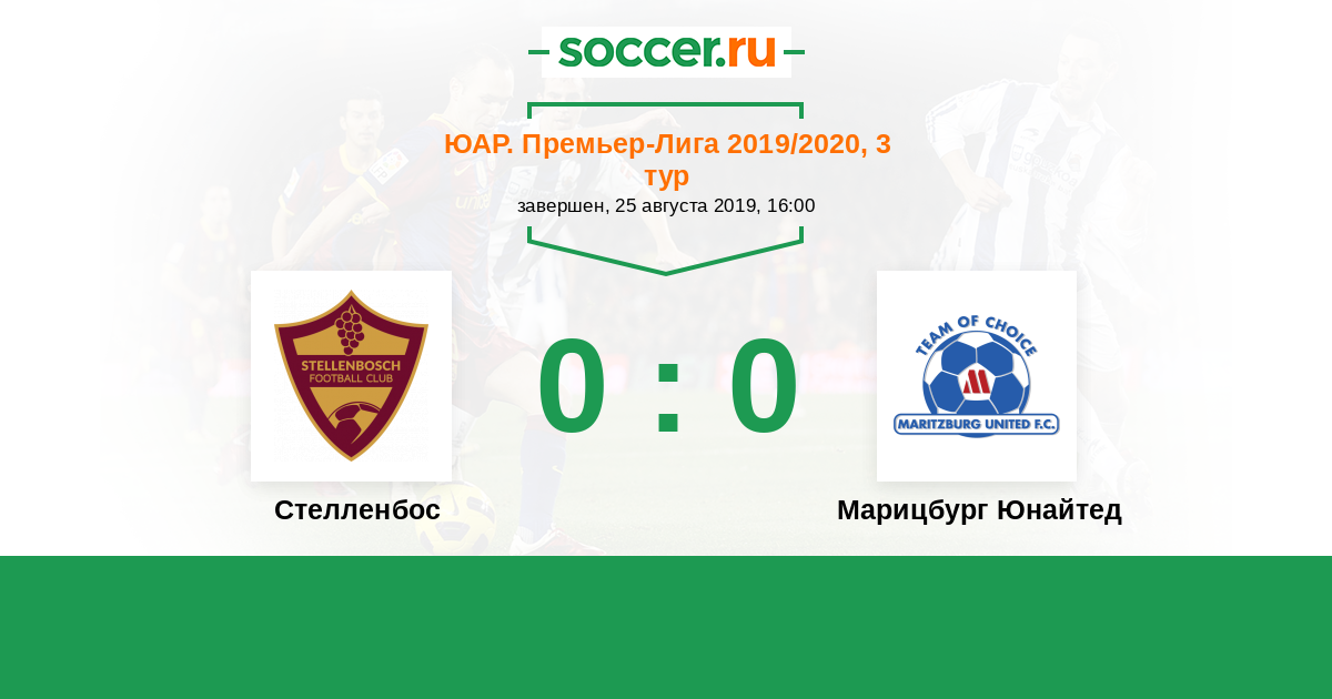 Протокол матча Стелленбос против Марицбург Юнайтед