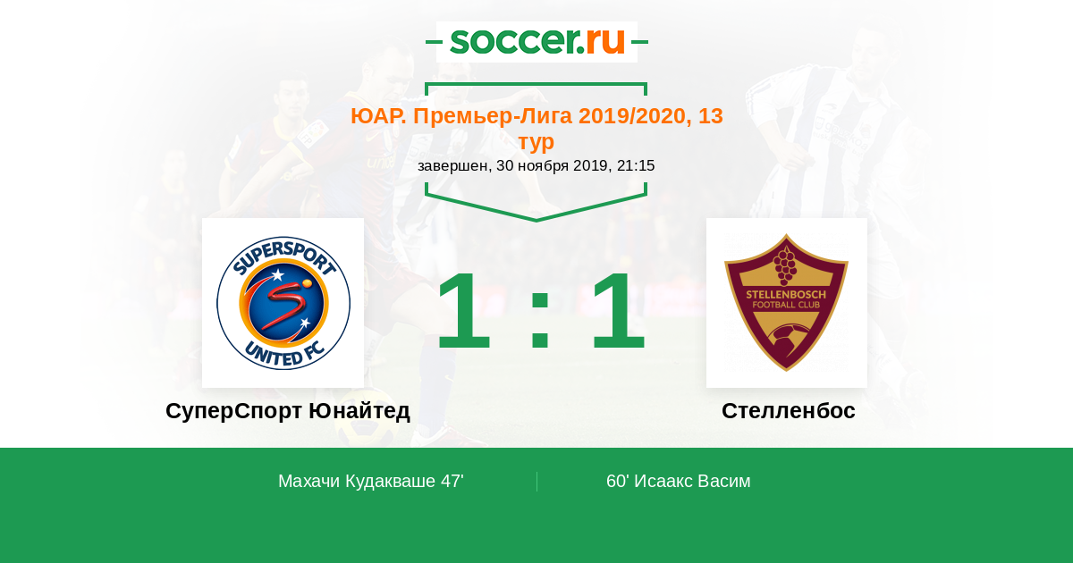 Протокол матча СуперСпорт Юнайтед против Стелленбос