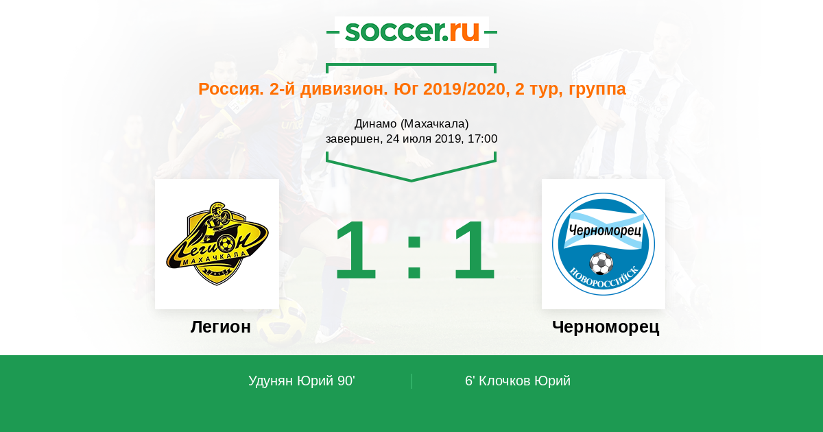 Протокол матча Легион против Черноморец